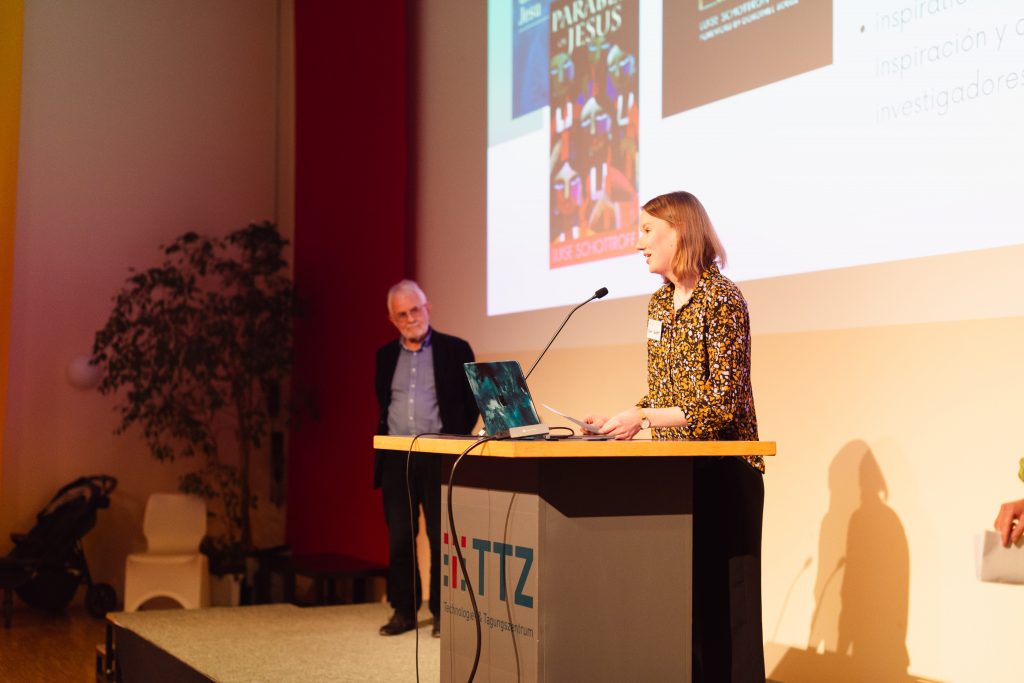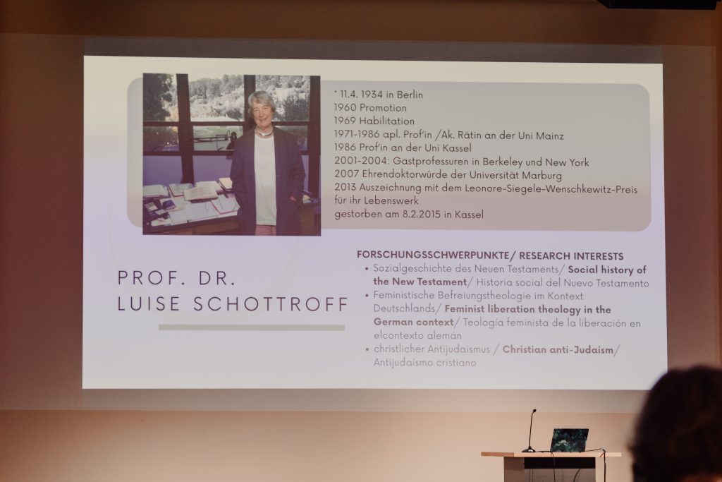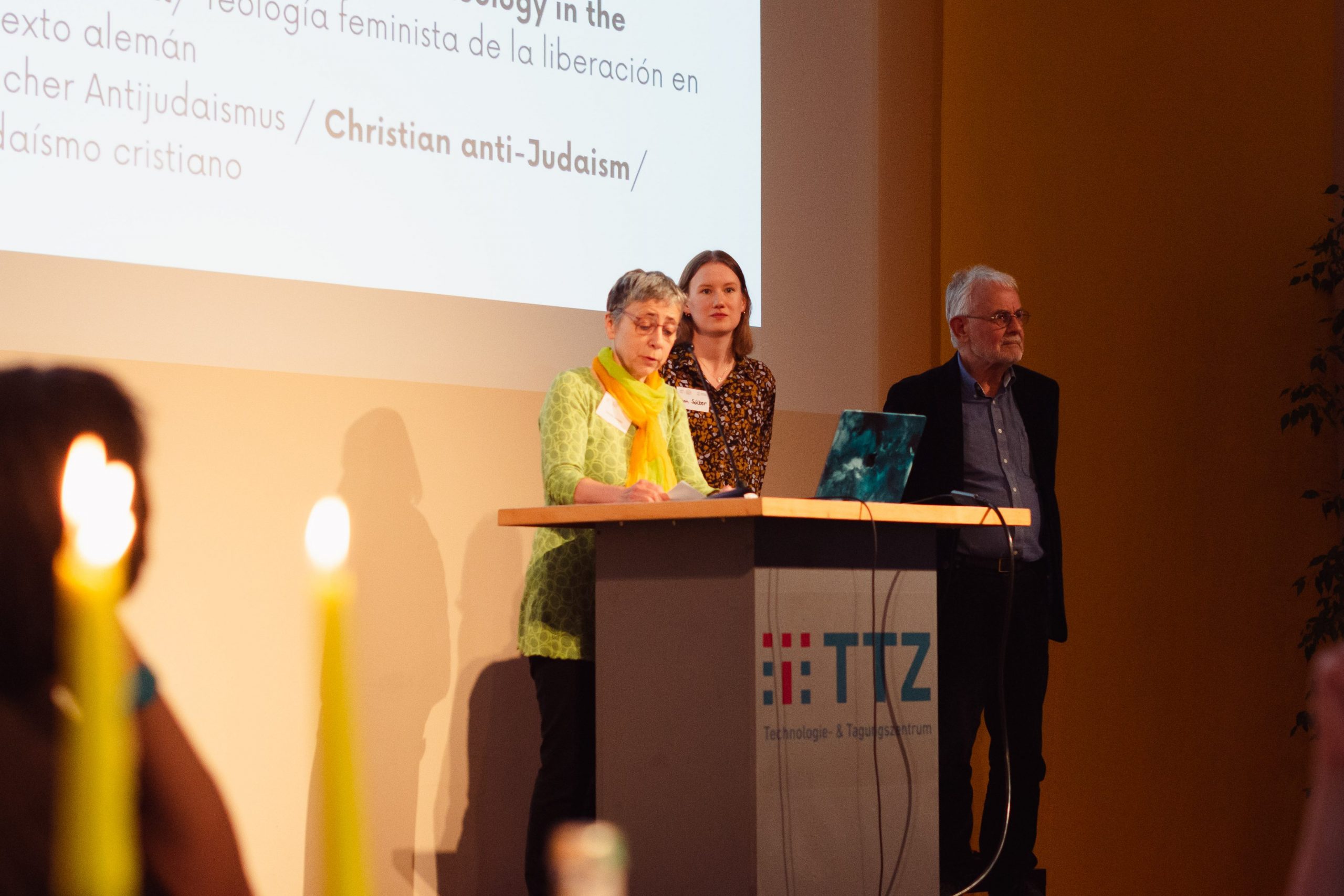 Claudia Janssen, Rainer Kessler und Kim Sölter sprachen über Luise Schottroffs Engagement für die feministische Theologie, den jüdisch-christlichen Dialog und über ihren Einsatz für die ESWTR, zu deren Gründungsmitgliedern sie zählte. Auch die bleibende Bedeutung ihres Schaffens für Theologien der Gegenwart und Zukunft war Thema des gemeinsamen Redebeitrags.